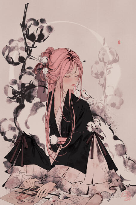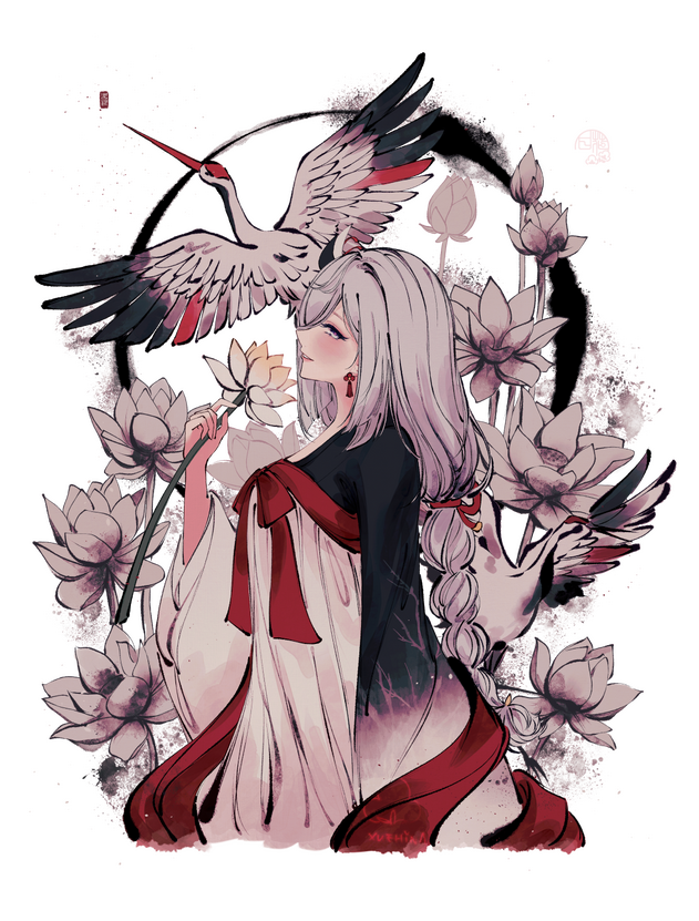 • Minimal number of accent colors + "monochrome" version included• Like with my other ink drawings, traditional east Asian style clothing/hair optional but recommended